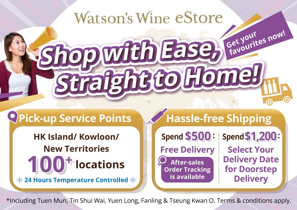 Offers valid until 13/04/2026 unless otherwise specified, while stocks last. All bottle sizes are 75cl unless stated otherwise. All prices shown are in HK dollars. Photos are for reference only. Above offers do not apply to purchases of limited time offer items, redemption items and clearance sale items, and may not be used in conjunction with other promotional offers. In case of any disputes, the decision of Watson’s Wine shall be final.