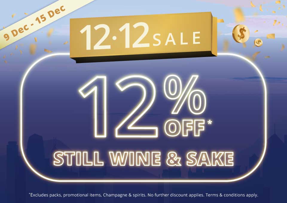 18. 12.12 SALE 优惠: 优惠期由 2025 年 12 月 09 日至 2025 年 12 月 15 日止。顾客於单次交易中购买正价红白酒丶清酒,可享额外 88 折优惠。此优惠不可与醇酒汇会员优惠及会员生日优惠同时享用。此优惠不适用於购买香槟丶烈酒丶限时优惠货品丶换购优惠货品丶醇酒特卖专区货品丶十二月限时闪购货品,亦不可与 Countdown Surprises 优惠丶$1,188 圣诞自选 6 支套装优惠丶$1,680 圣诞自选 6 支套装优惠及其他优惠同时使用。