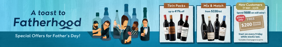 由5月17日至6月13日起一連四星期,每星期首100位新客戶於網店/App購買紅、白酒*或清酒滿$688,即可輸入優惠碼「WW200」領取$200麗新餐飲禮券一張*。即睇以下推薦,帶埋支酒,去餐廳同爸爸慶祝!