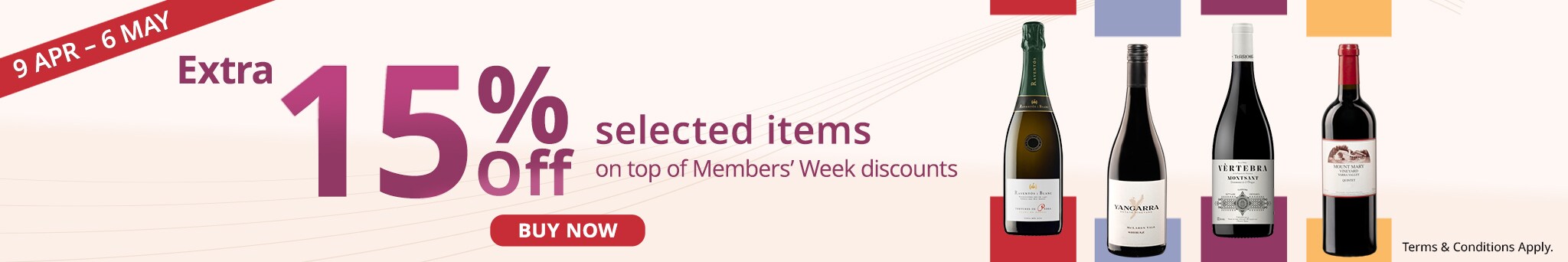 12.12 SALE 優惠 - 額外 95 折優惠: 優惠期由 2025 年 12 月 09 日至 2025 年 12 月 15 日止。顧客於單次交易中購買指定會員價紅、白酒,可享額外 95 折優惠。此優惠不可與醇酒匯會員優惠及會員生日優惠同時享用。此優惠不適用於購買香檳、烈酒、限時優惠貨品、換購優惠貨品、醇酒特賣專區貨品、十二月限時閃購貨品,亦不可與 Countdown Surprises 優惠、$1,188 聖誕自選 6 支套裝優惠、$1,680 聖誕自選 6 支套裝優惠及其他優惠同時使用。