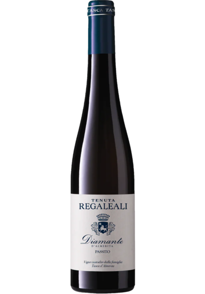 A Passito (raisin wine) that evokes a fresh territory like the Regaleali hills, and the historic “Diamond Anniversary” when Count Giuseppe dedicated this wine to his wife to celebrate sixty years together. Moscato and Traminer aromatic grapes cultivated on the highest hills of the Estate, which are dry and shaded to preserve the acidity and typical aromatic characteristics: candied orange, yellow rose and orange blossom honey.
